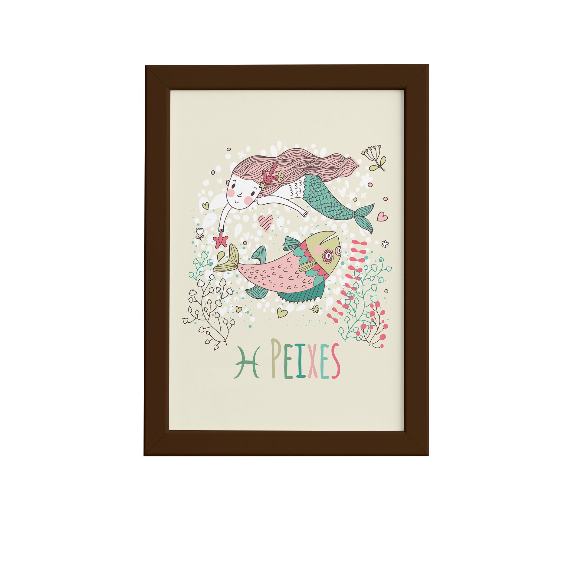 Quadro Signo Peixes Moldura Marrom 33x43cm