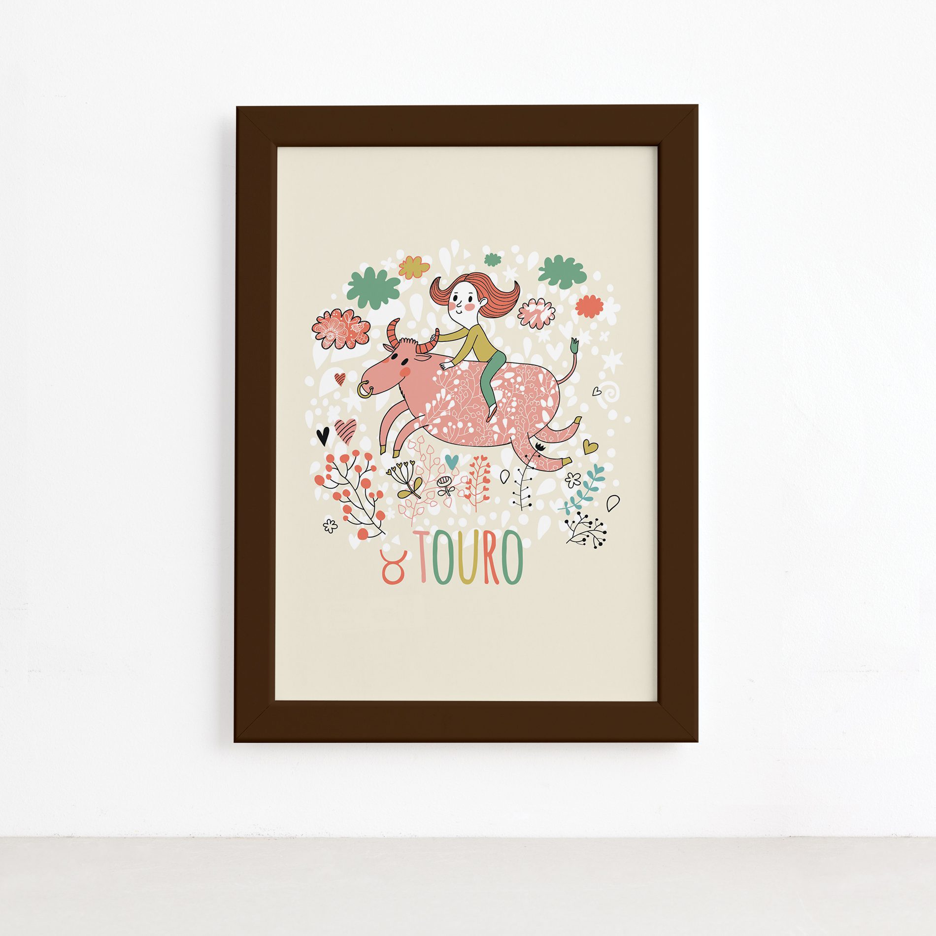 Quadro Signo Touro Moldura Marrom 22x32cm