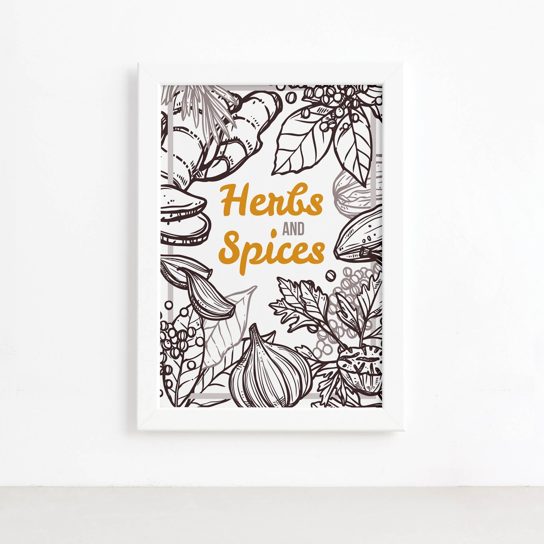 Quadro Tempero Cozinha Herbs and Spices Moldura Branca 22×32