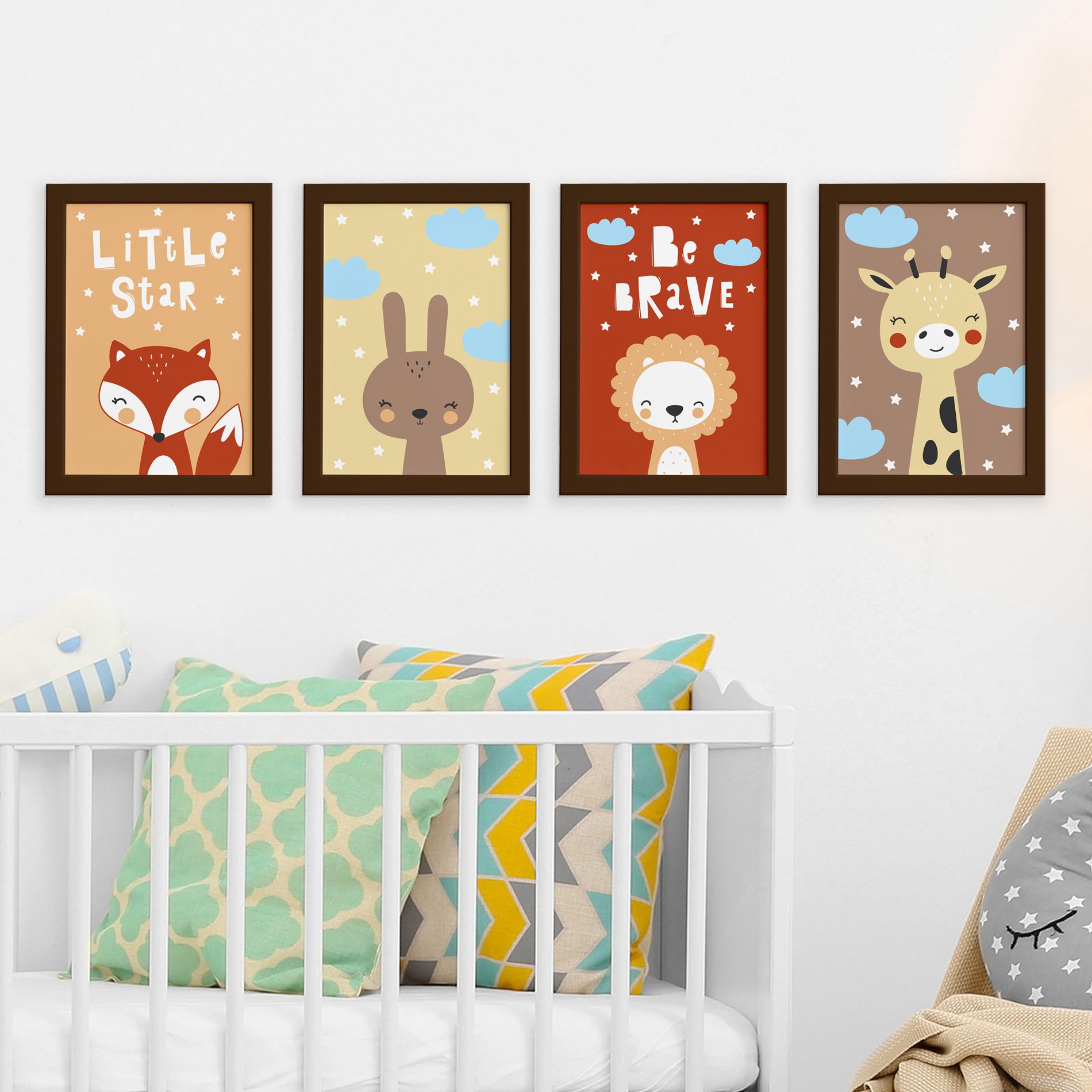 Quadros Decorativos Animais Escandinavos 4un Marrom 22x32cm