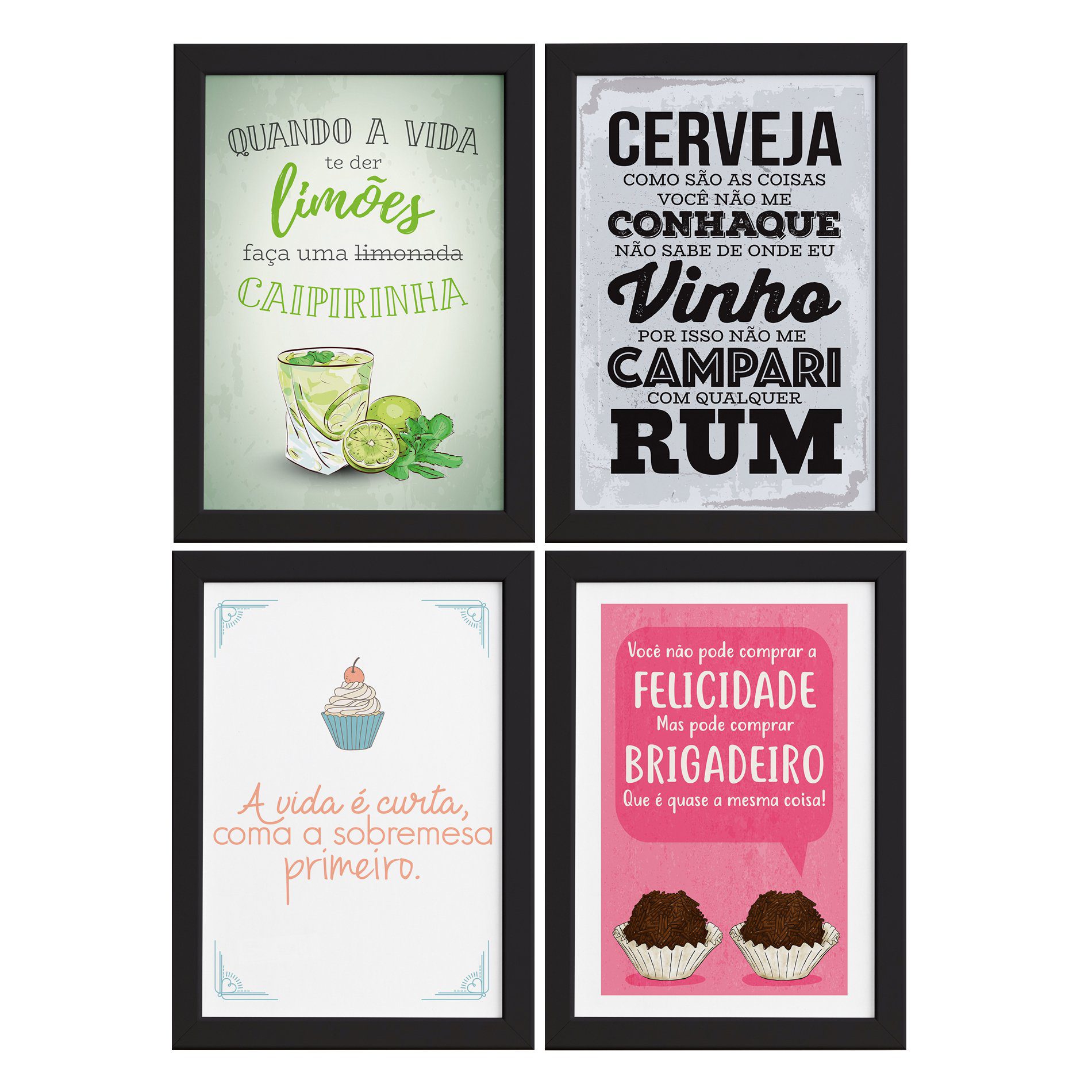 Quadros Cozinha Drinks e Desserts Moldura Preta 22x32cm 4un