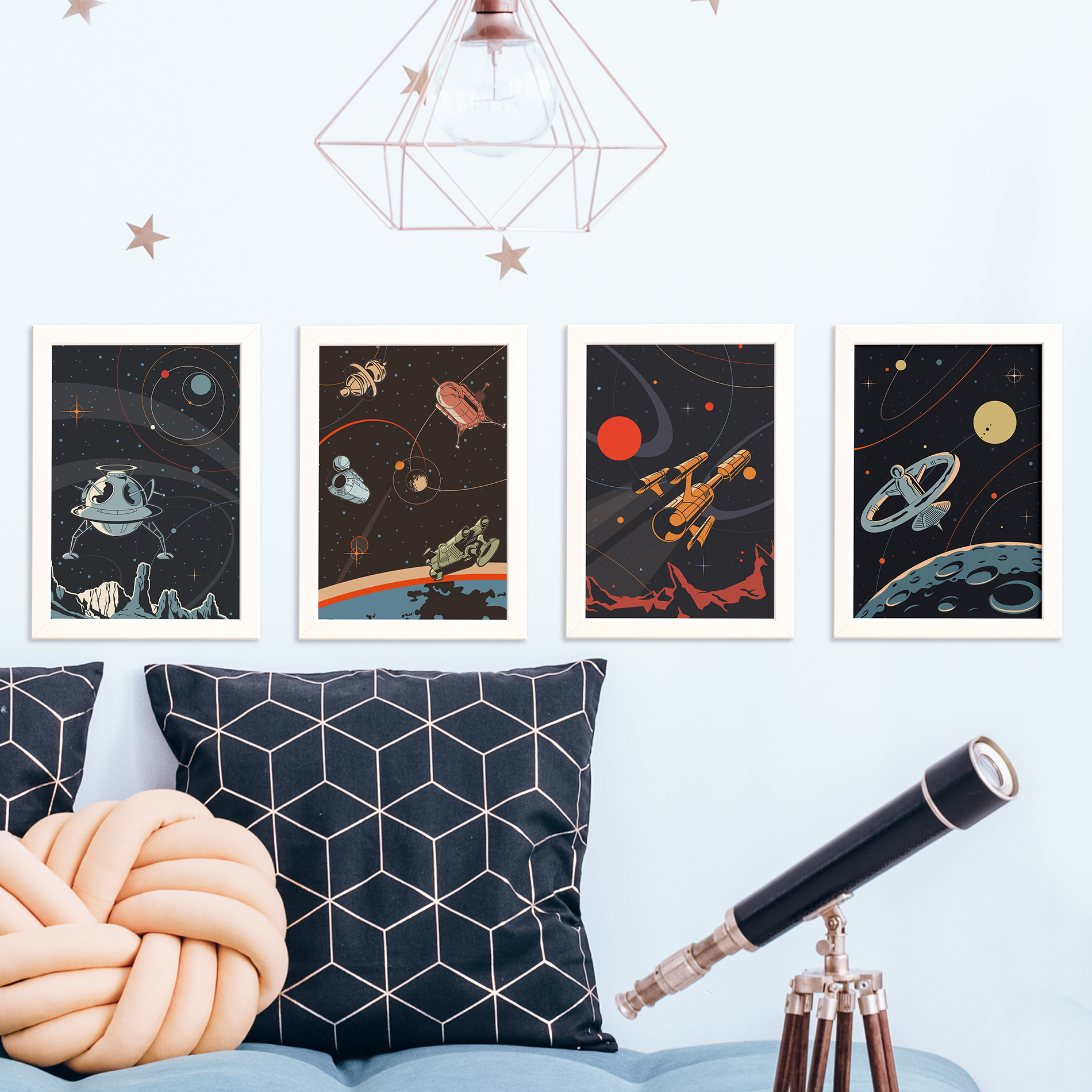 Tudo o que você precisa saber sobre Quadros Decorativos Espaço Retrô Kit 4un Mold Branca 22x32cm