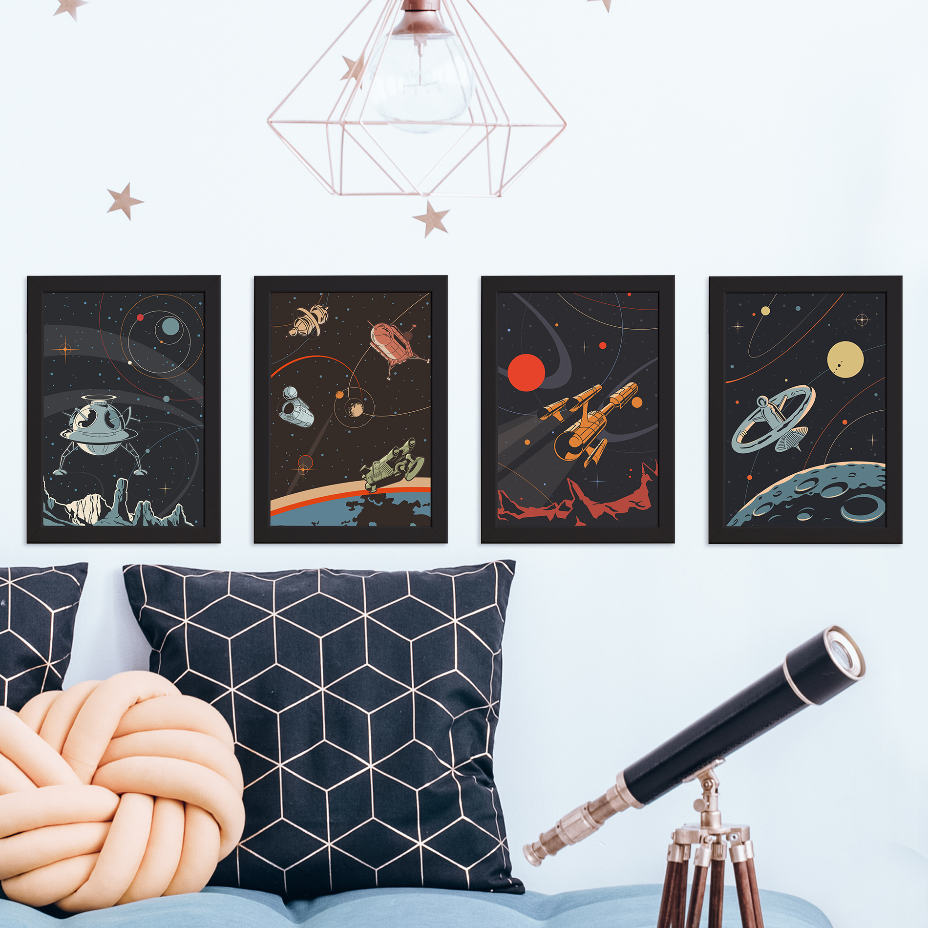Quadros Decorativos Espaço Retrô Kit 4un Mold Preta 22x32cm