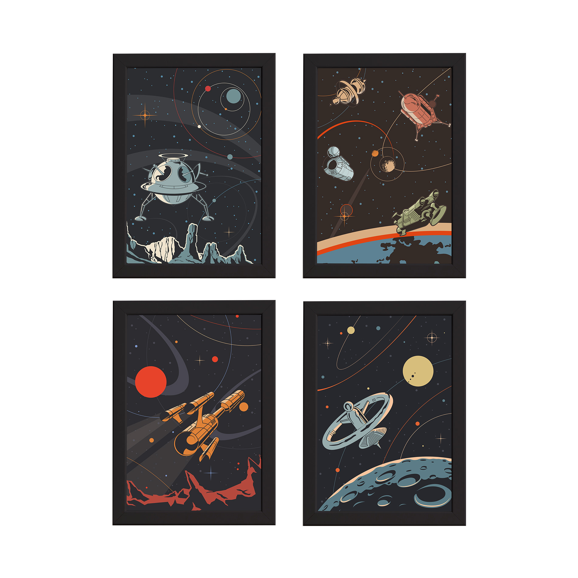 Kit Quadros Espaço Retrô Kit 4un Mold Preta 22x32cm