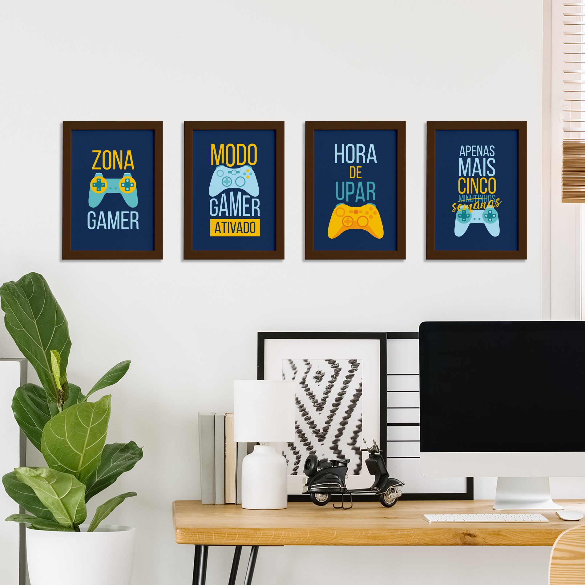 Quadros Decorativos Gamer Português Kit 4un Marrom 22x32cmDisponibilidade: Apenas 5 em estoque