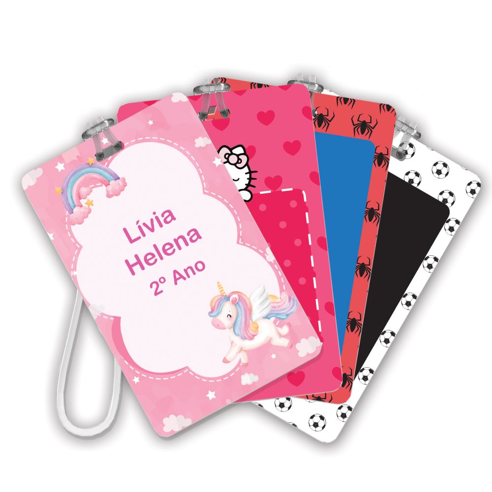 4 Tags para identificação de mochila ou lancheira 8,5×5,5cm.
