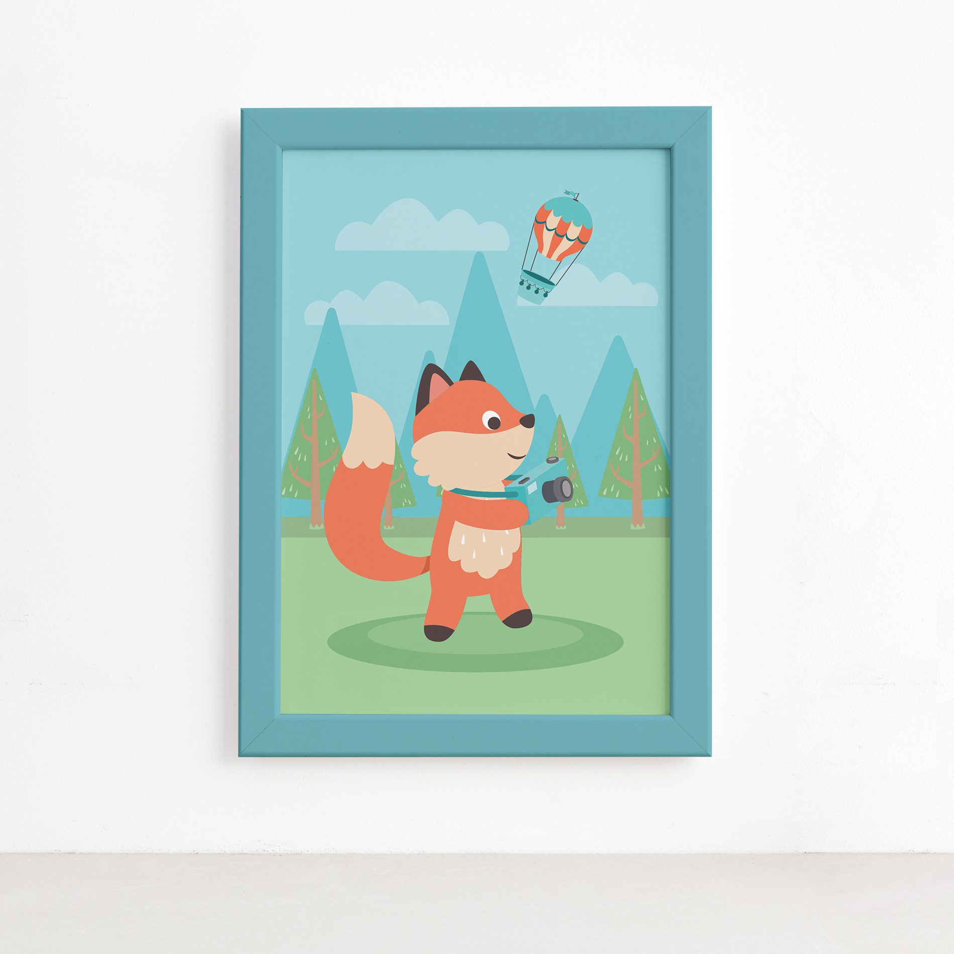 Quadro Animais Raposa Viajante Moldura Azul 22x32cm