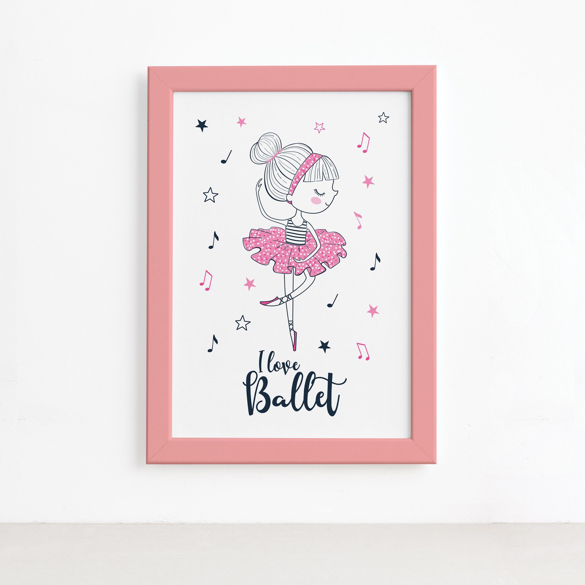 Quadro Bailarina Frase I Love Ballet Moldura Rosa 22x32cm