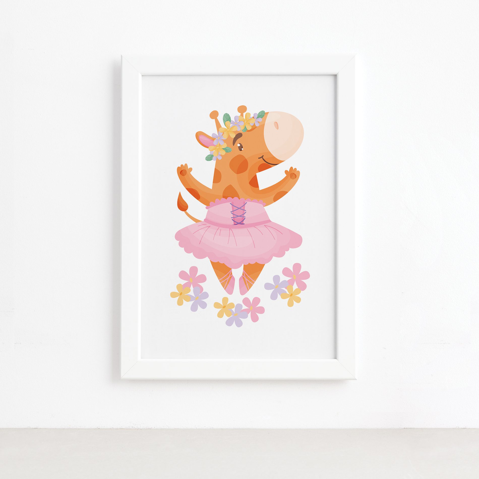 Quadro Bailarina Girafa para Menina Moldura Branca 22x32cm