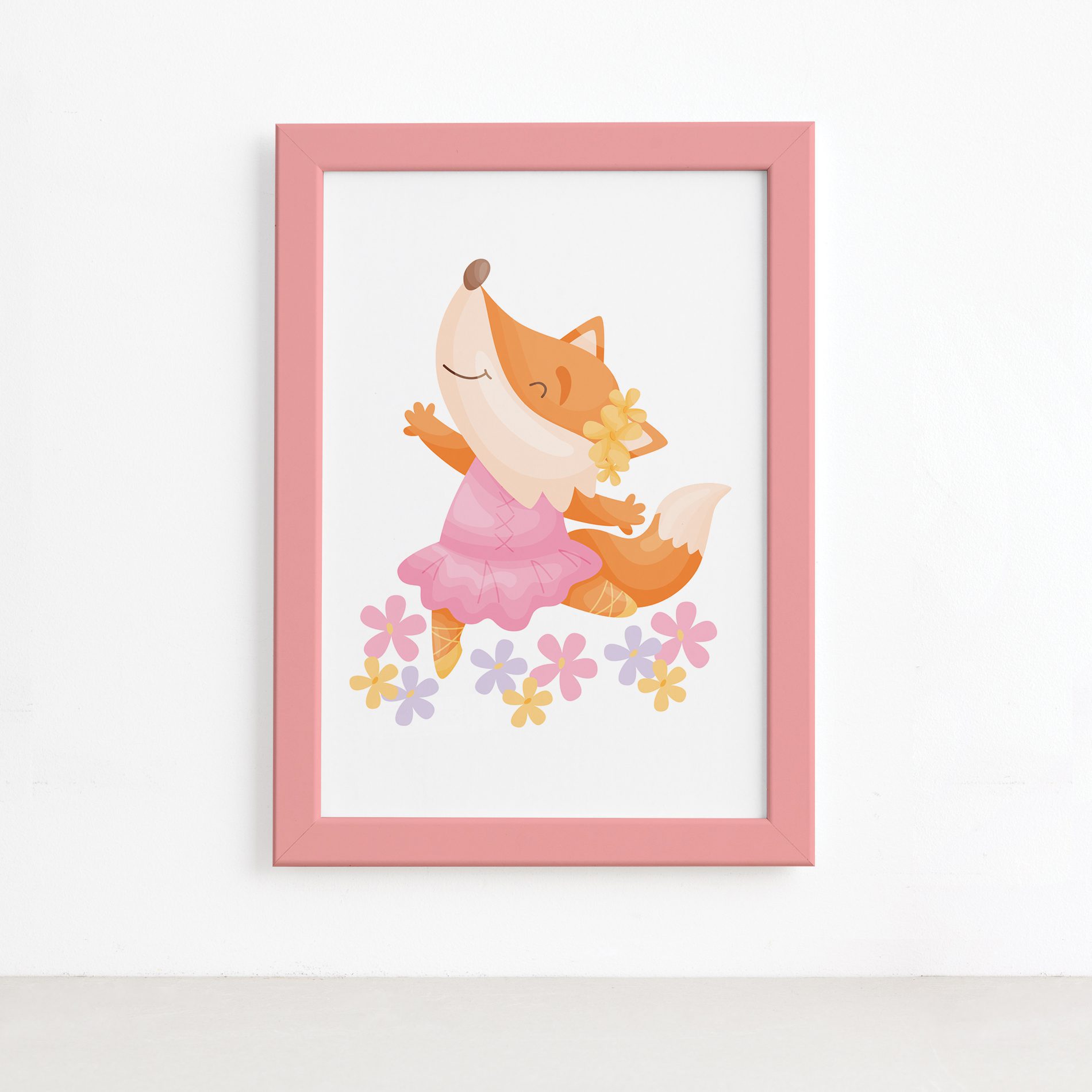 Quadro Bailarina Raposa para Menina Moldura Rosa 22x32cmQuadro Bailarina Raposa para Menina Moldura Rosa 22x32cm