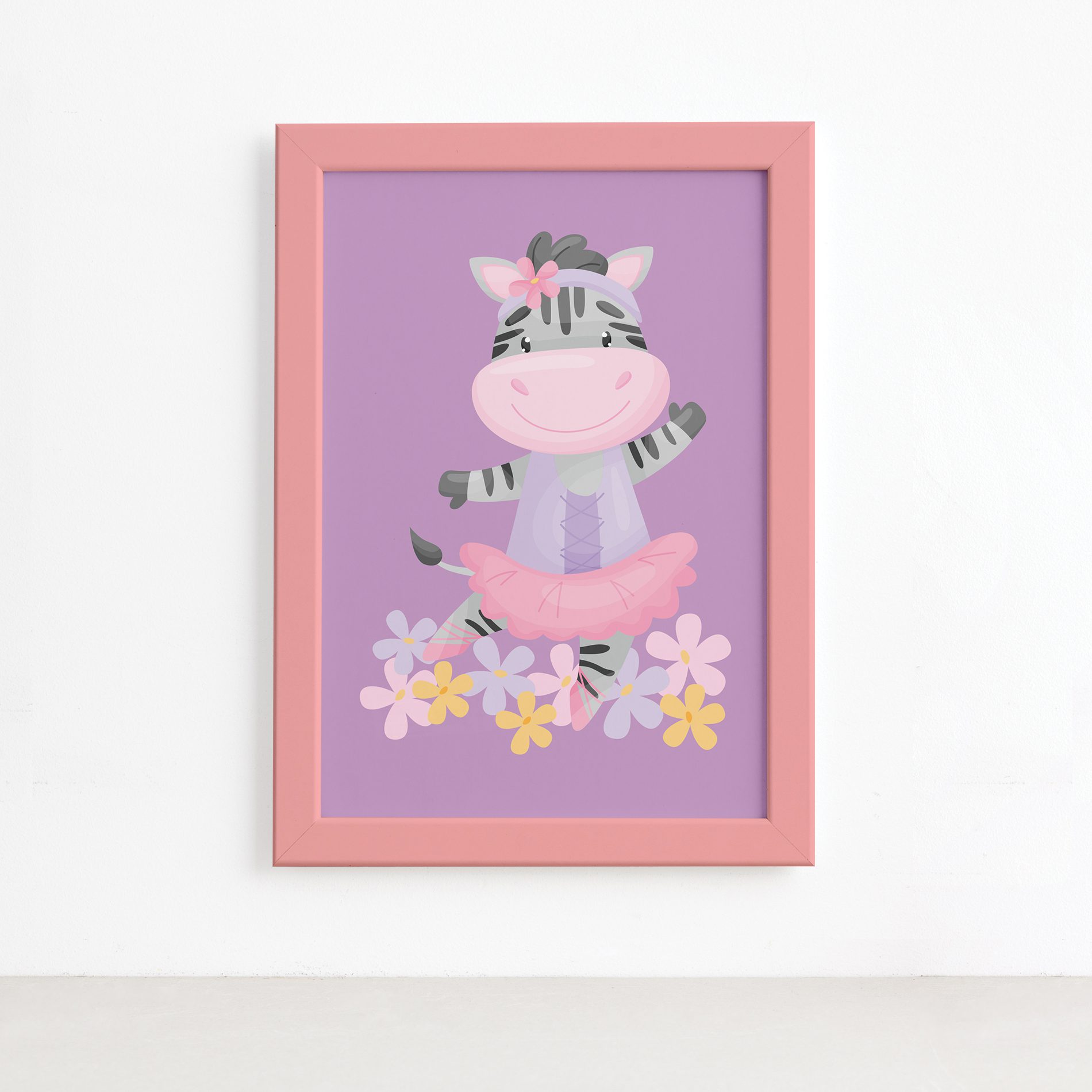 Quadro Bailarina Zebra para Menina Moldura Rosa 22x32cm