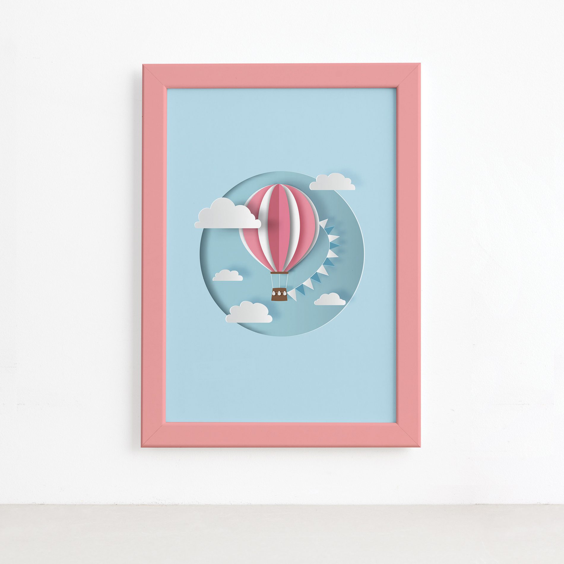 Quadro Balão Praia Infantil Moldura Rosa 22x32cm