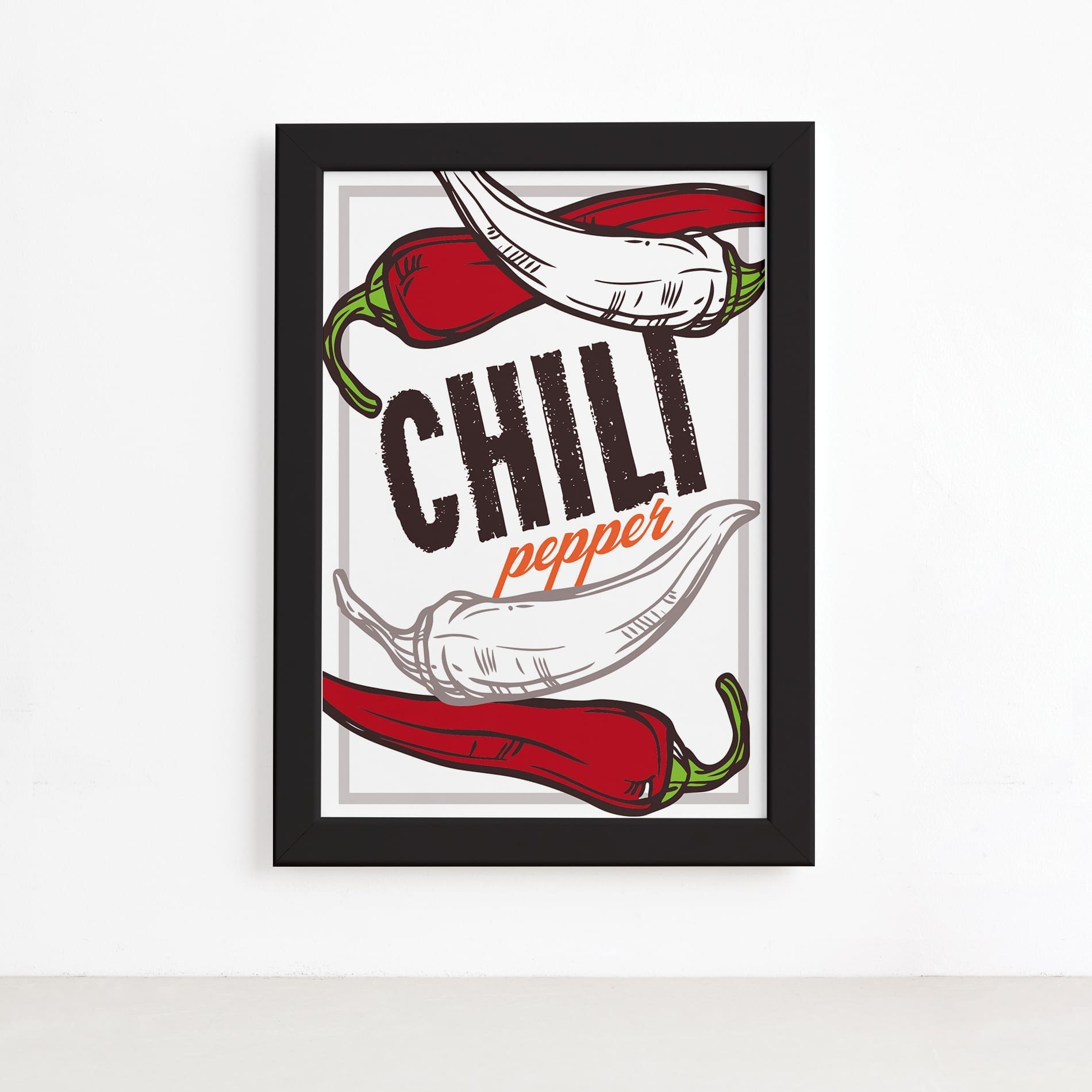 Quadro Cozinha Tempero Chili Pepper Moldura Preta 22x32cm