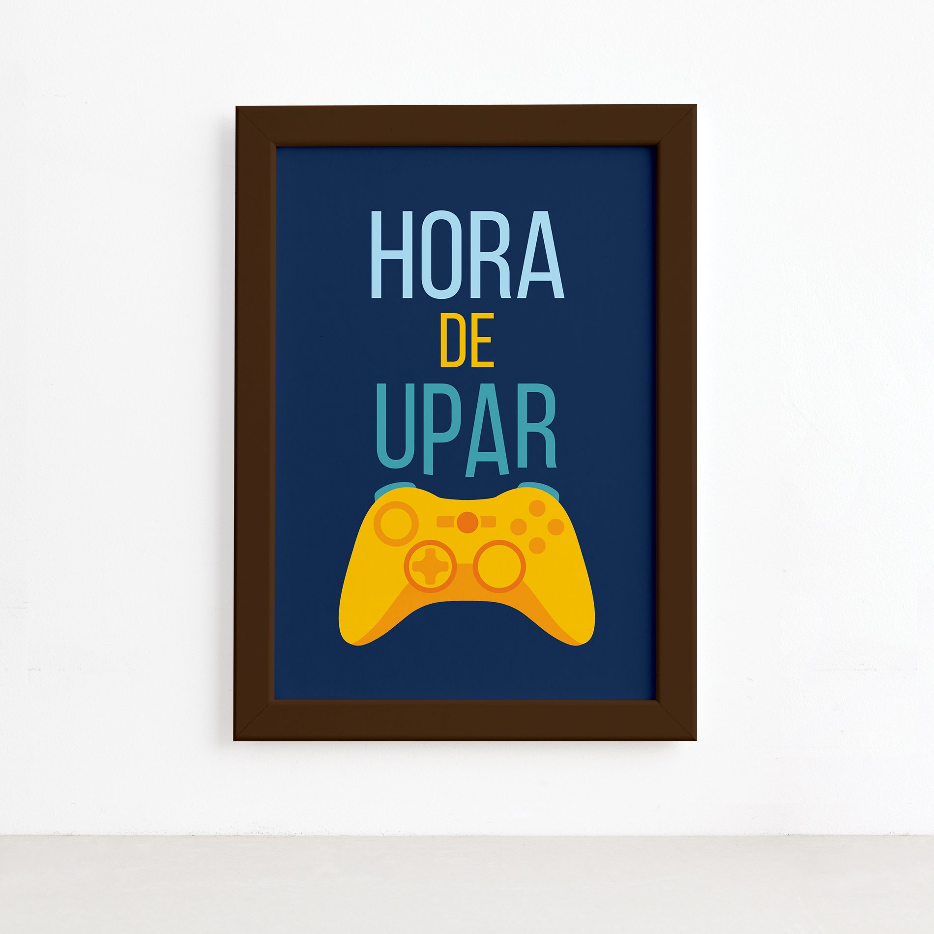 Características e Dimensões do Quadro Decorativo Gamer Hora de Upar Moldura Marrom