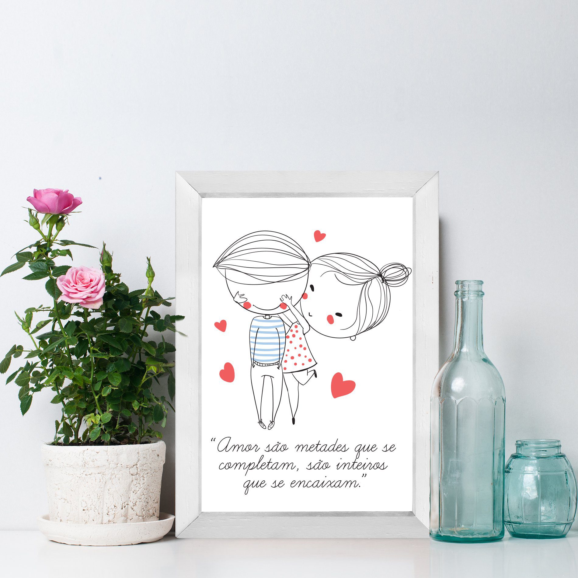 Quadro para Quarto Frase Namorados Moldura Branca 33x43cm