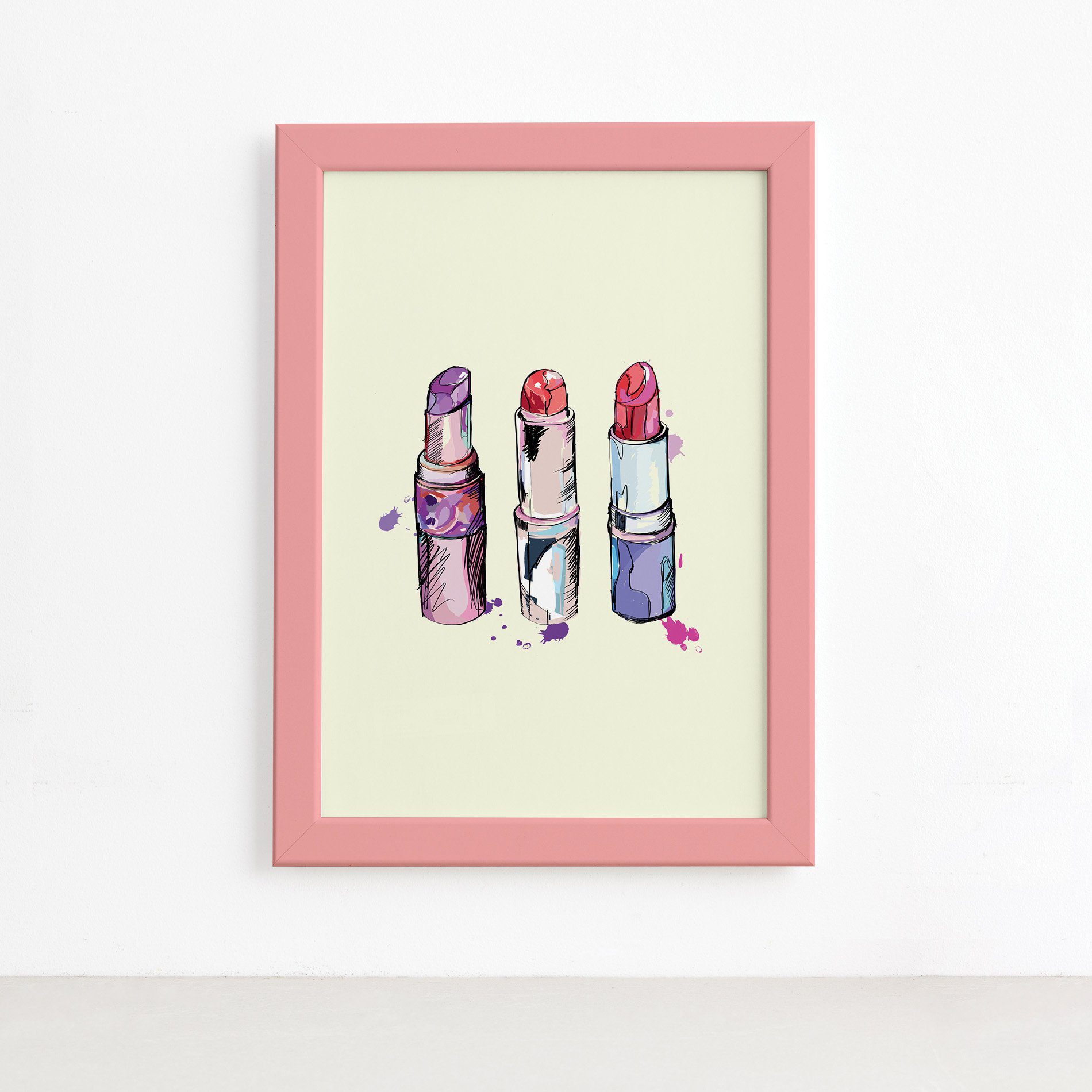 Quadro Maquiagem Batons Trio Moldura Rosa 22x32cm