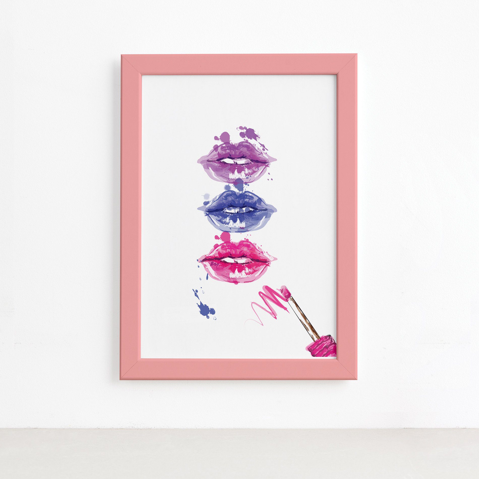 Quadro Maquiagem Bocas Trio Moldura Rosa 22x32cm